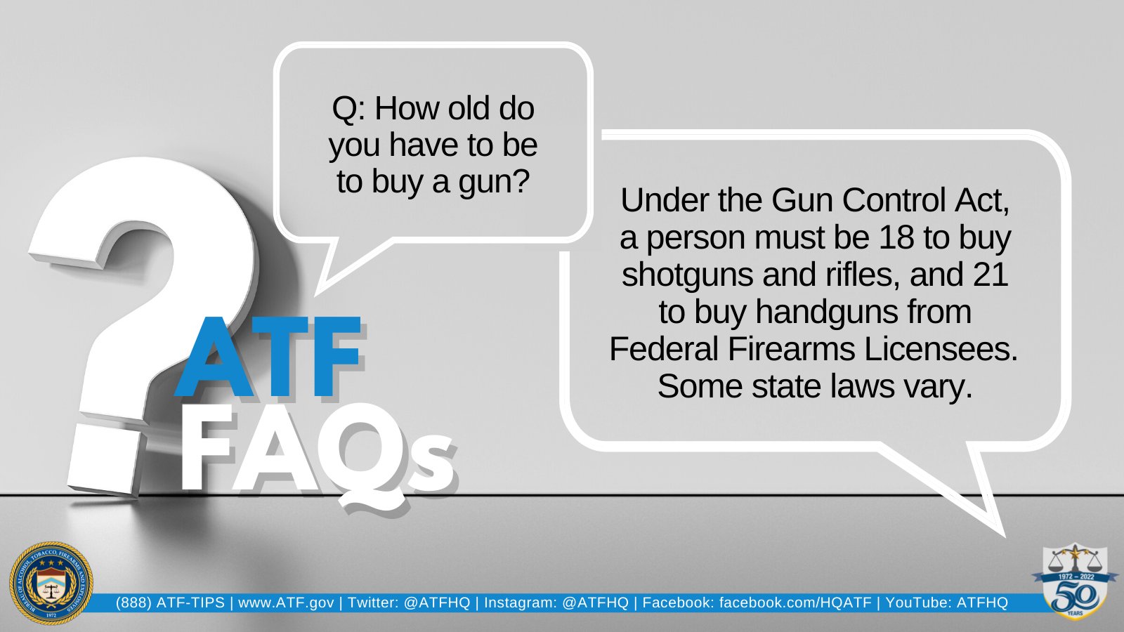 Atf Hq On Twitter Faq How Old Do You Have To Be To Buy A Gun Answer Under The Gca Shotguns And Rifles And Shotgun And Rifle Ammo May Be Sold By